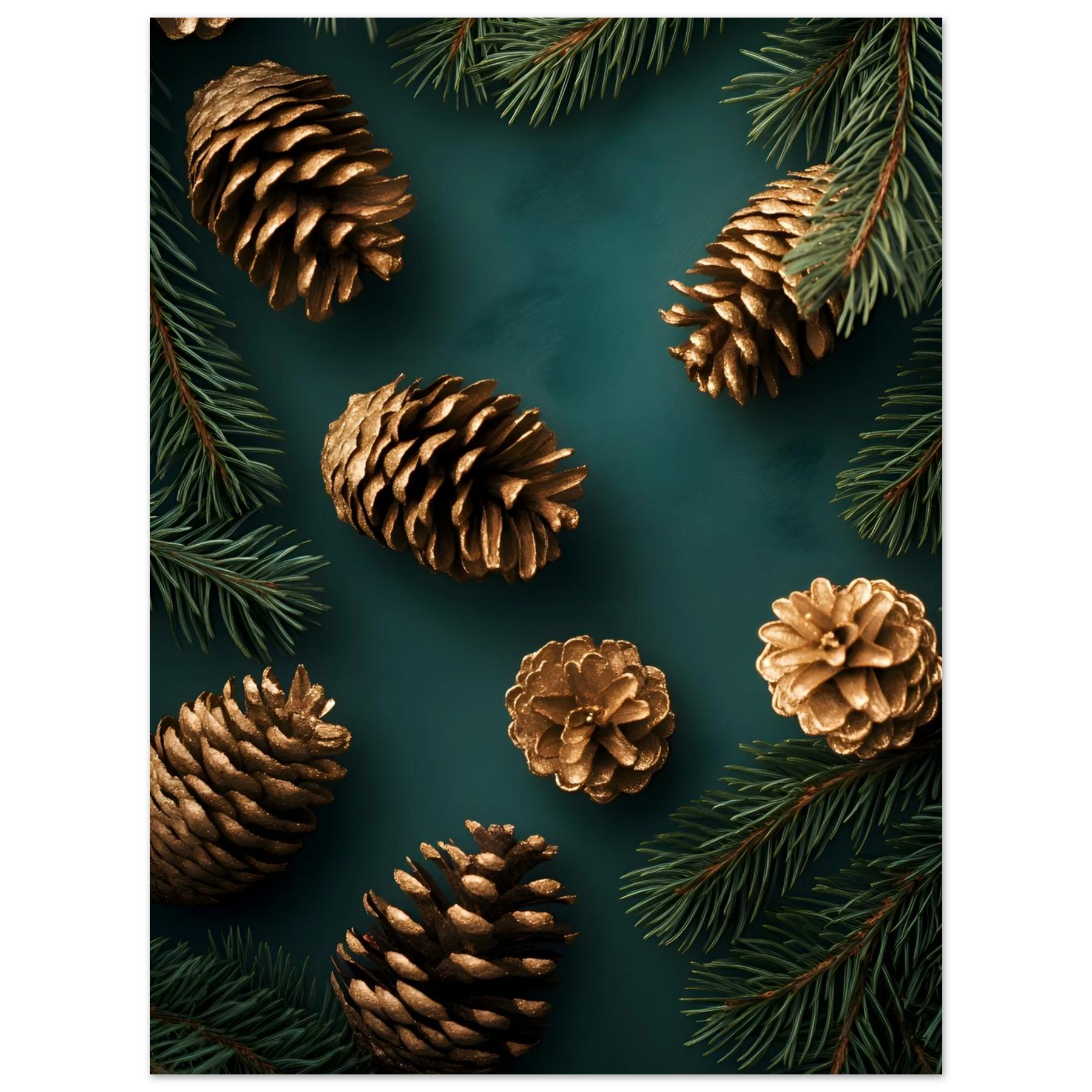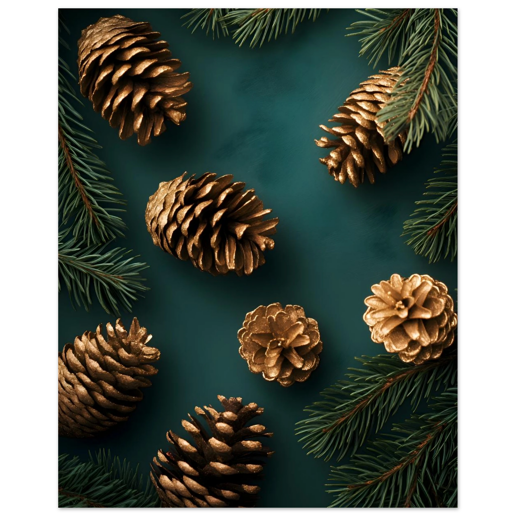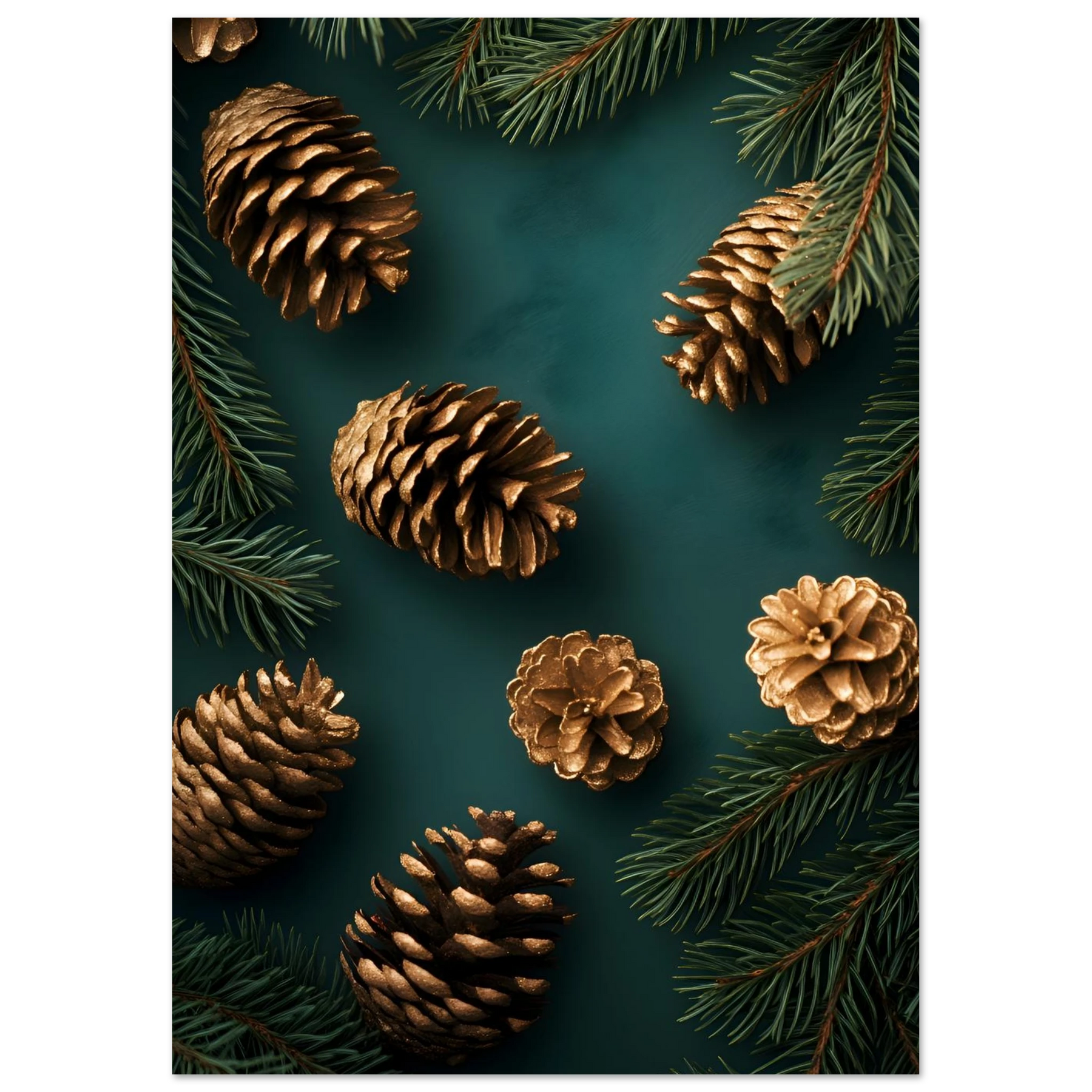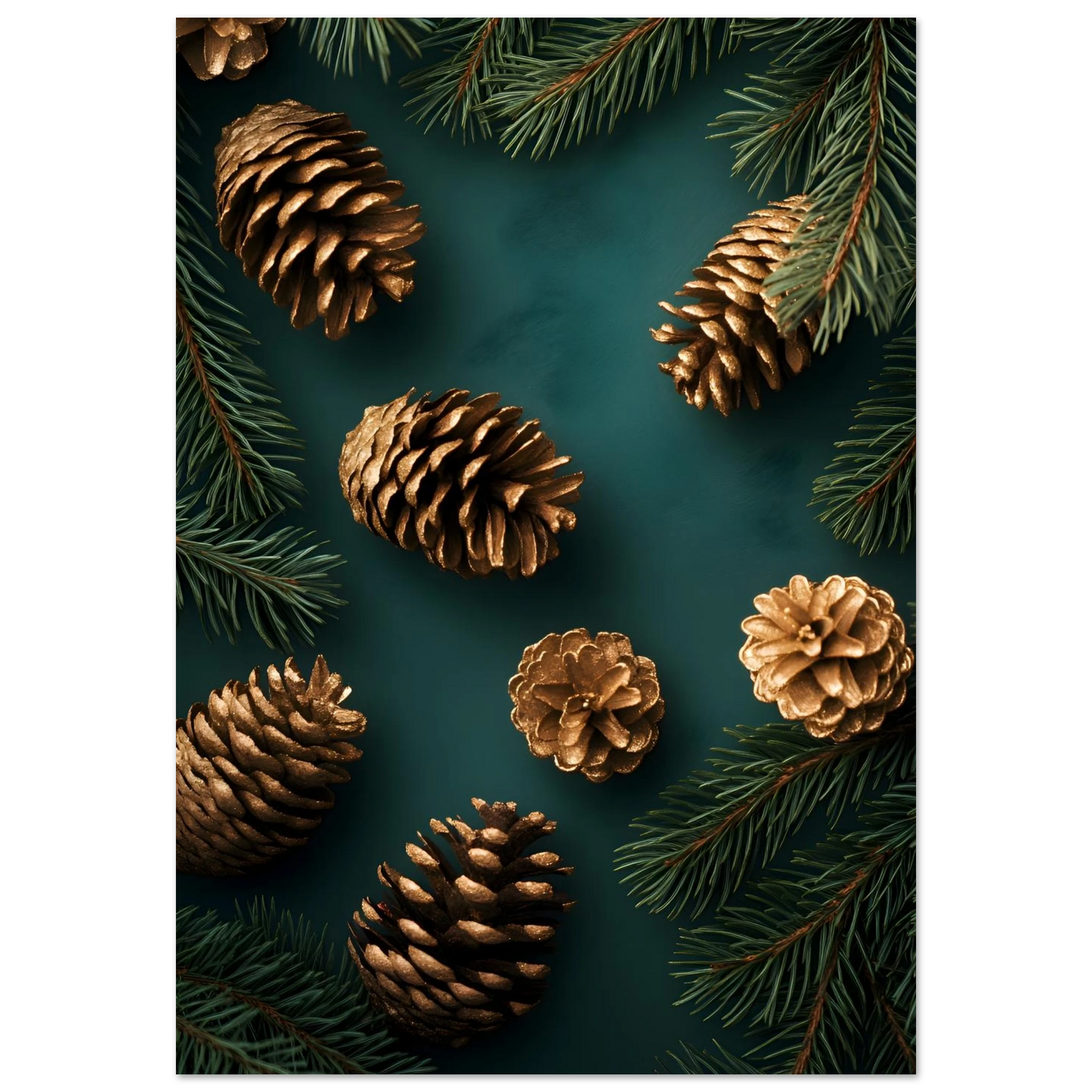 Guldfärgade kottar mot dämpad grönska. En känsla av vinter, värme och stil – naturens form i förfinad tolkning.